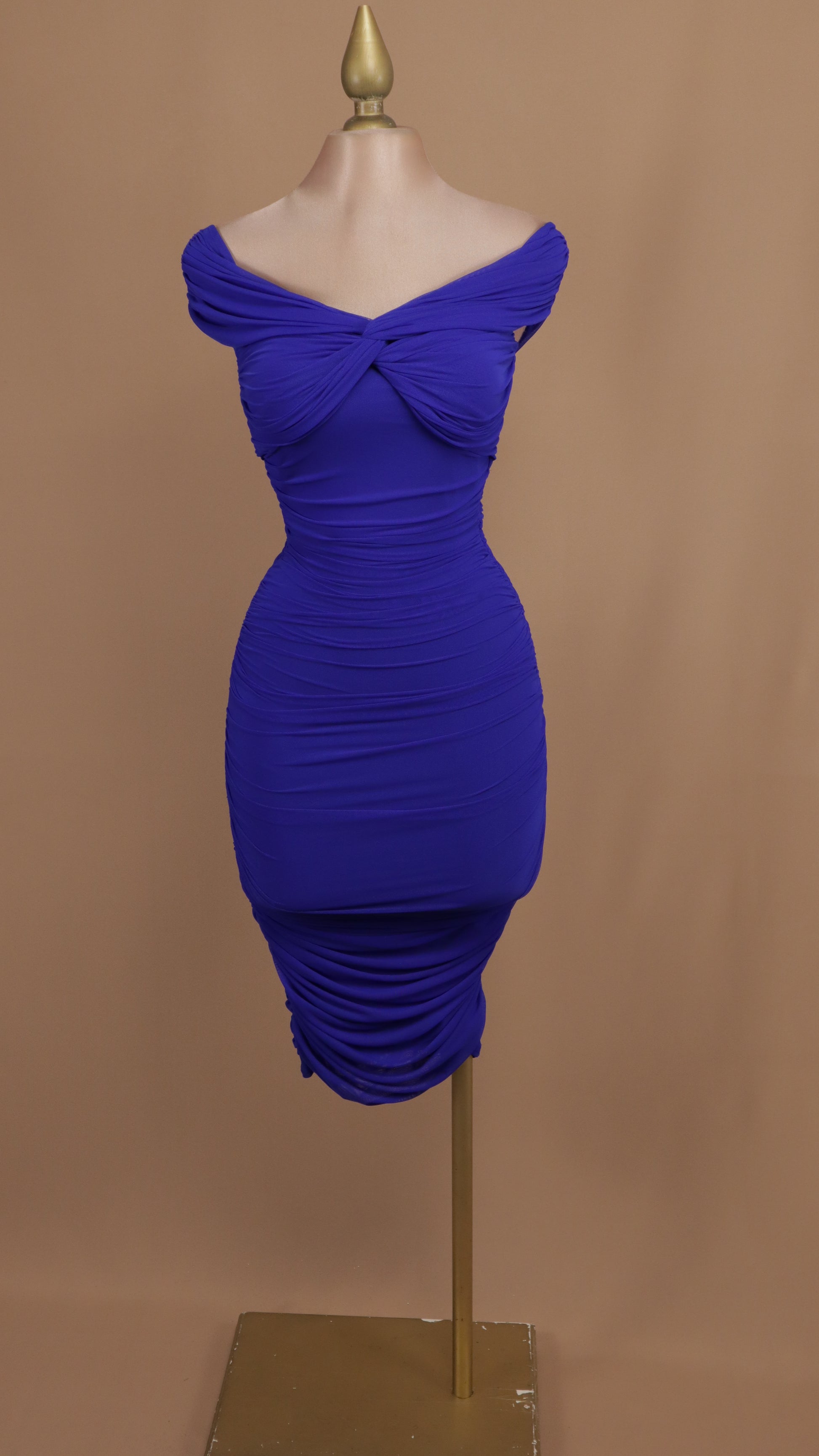 Vestido midi corrugado al hombro