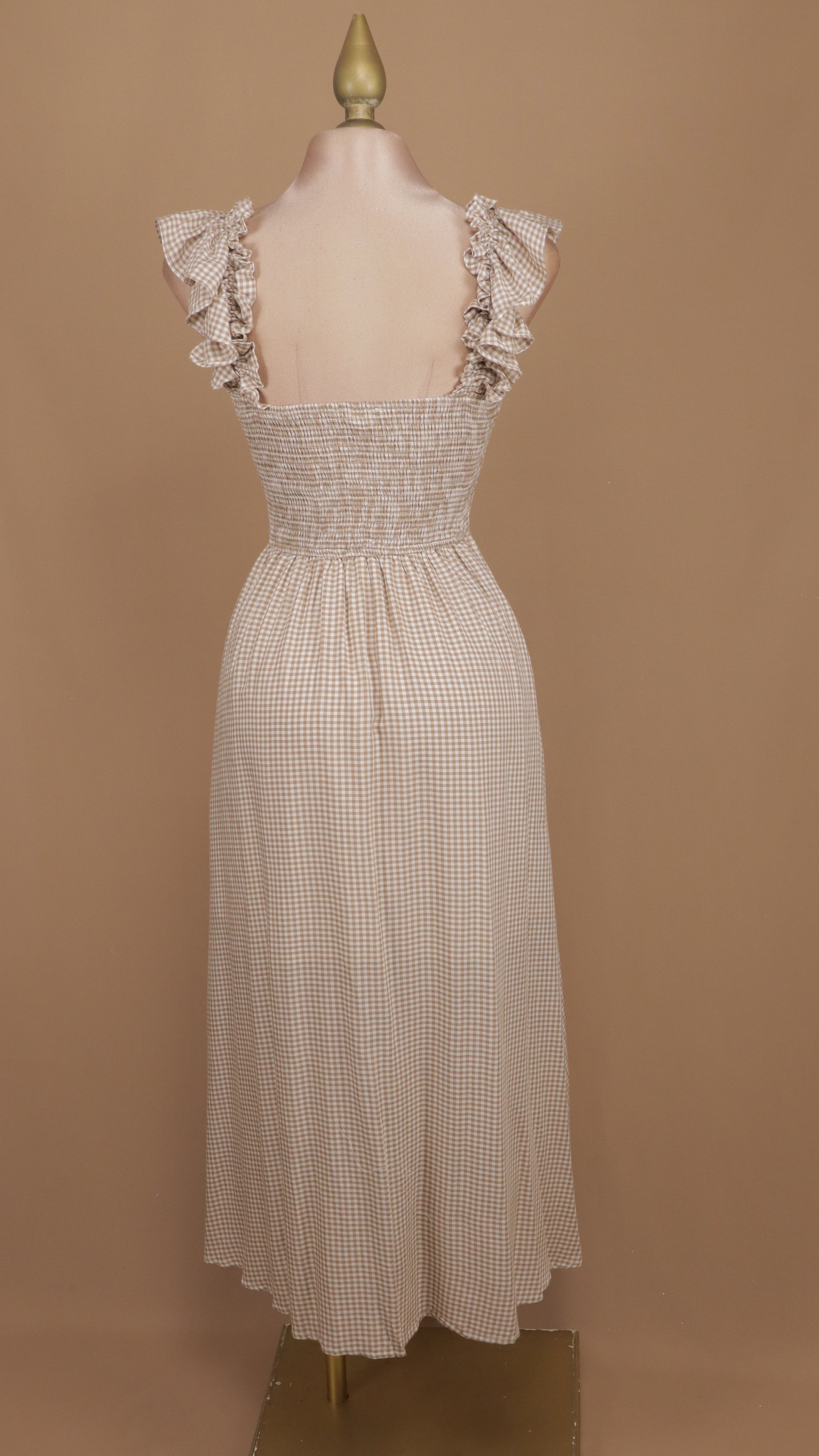 Vestido midi cuadricular con moños en busto