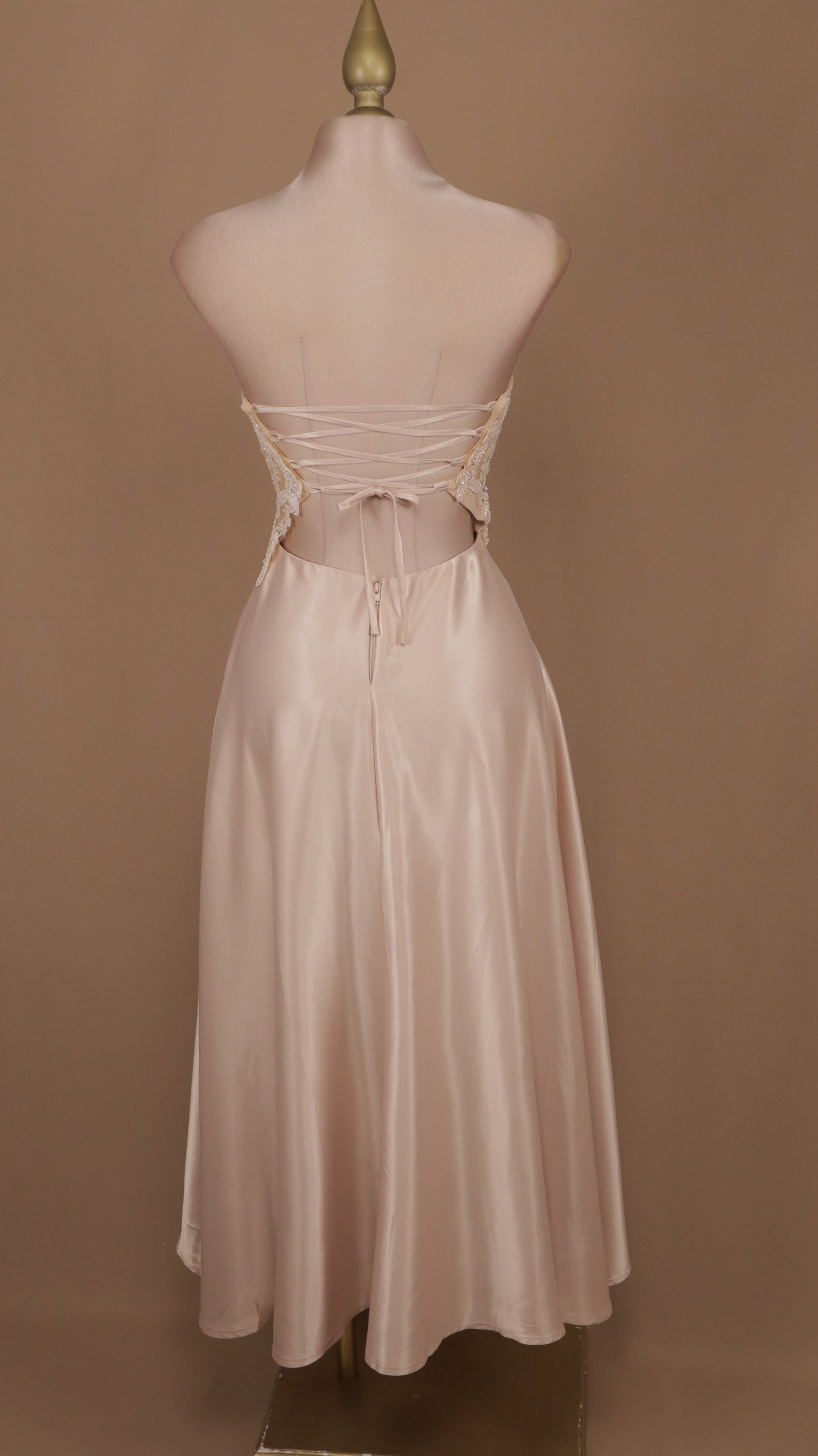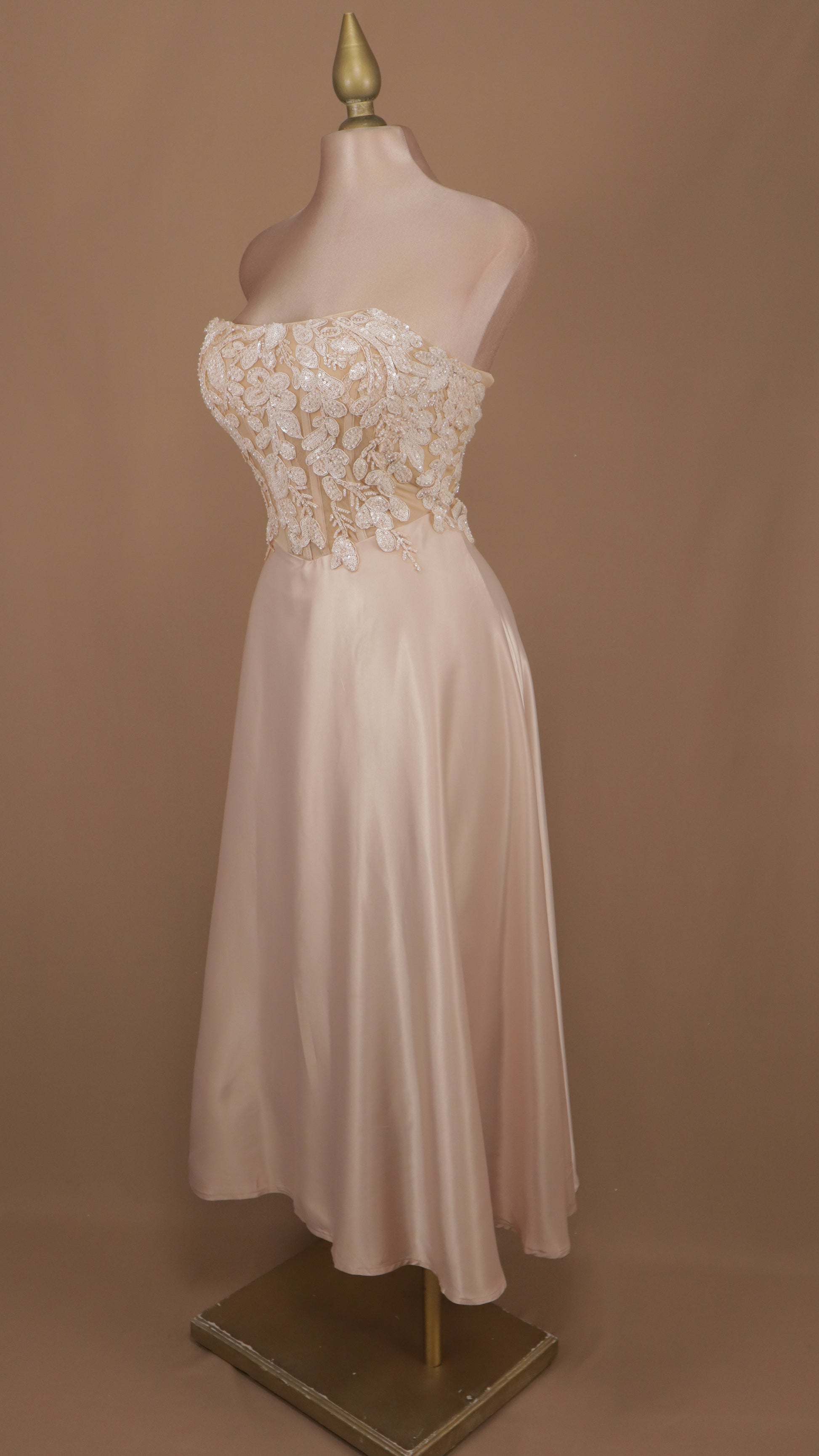 Este hermoso vestido midi tiene un diseño elegante y moderno, con un escote strapless y una hermosa aplicación en la cintura. Perfecto para cualquier ocasión especial, lucirás radiante y sofisticada. ¡Destaca tu estilo con este vestido impresionante!