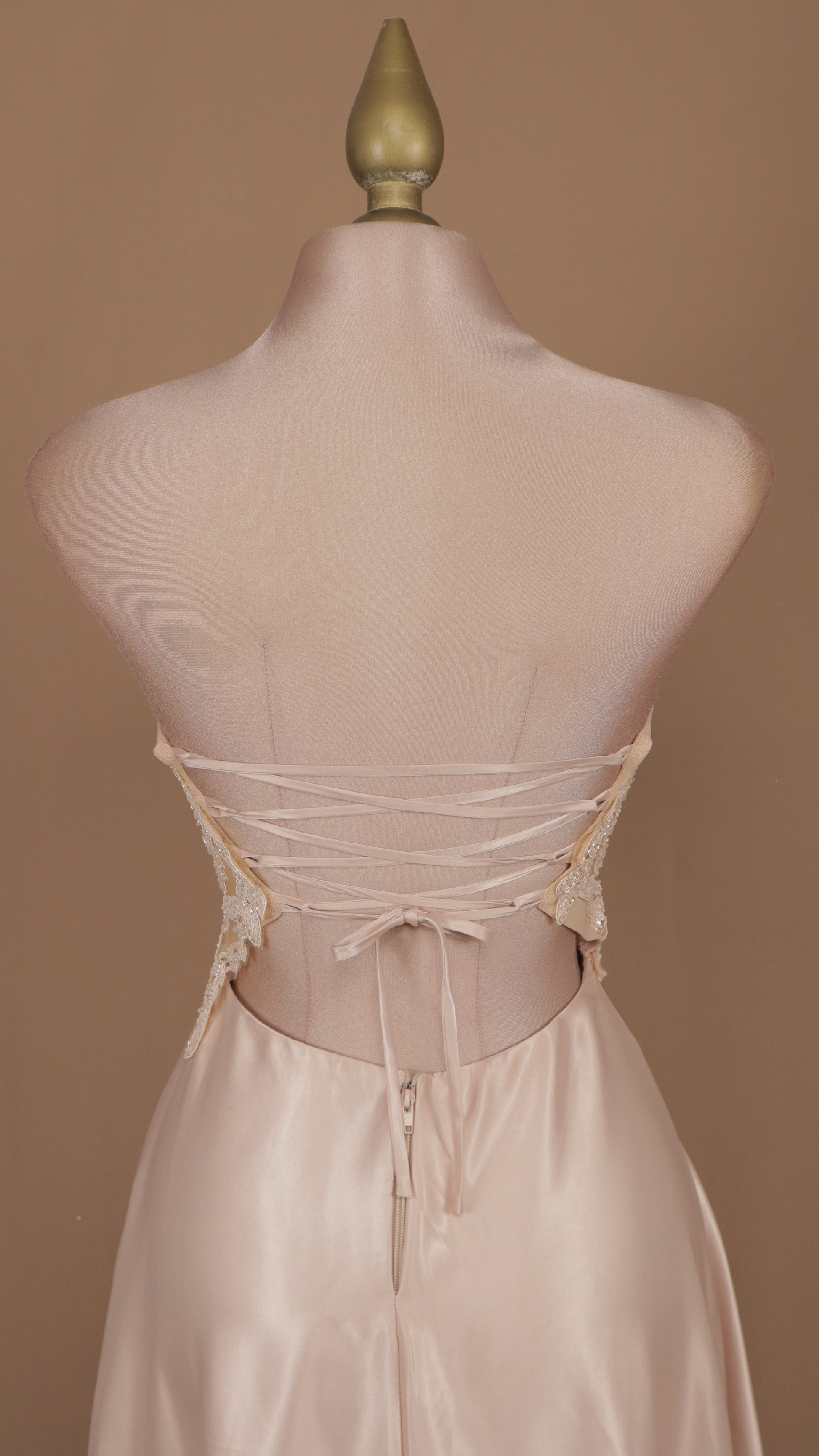 Vestido midi estraple con aplicación en busto