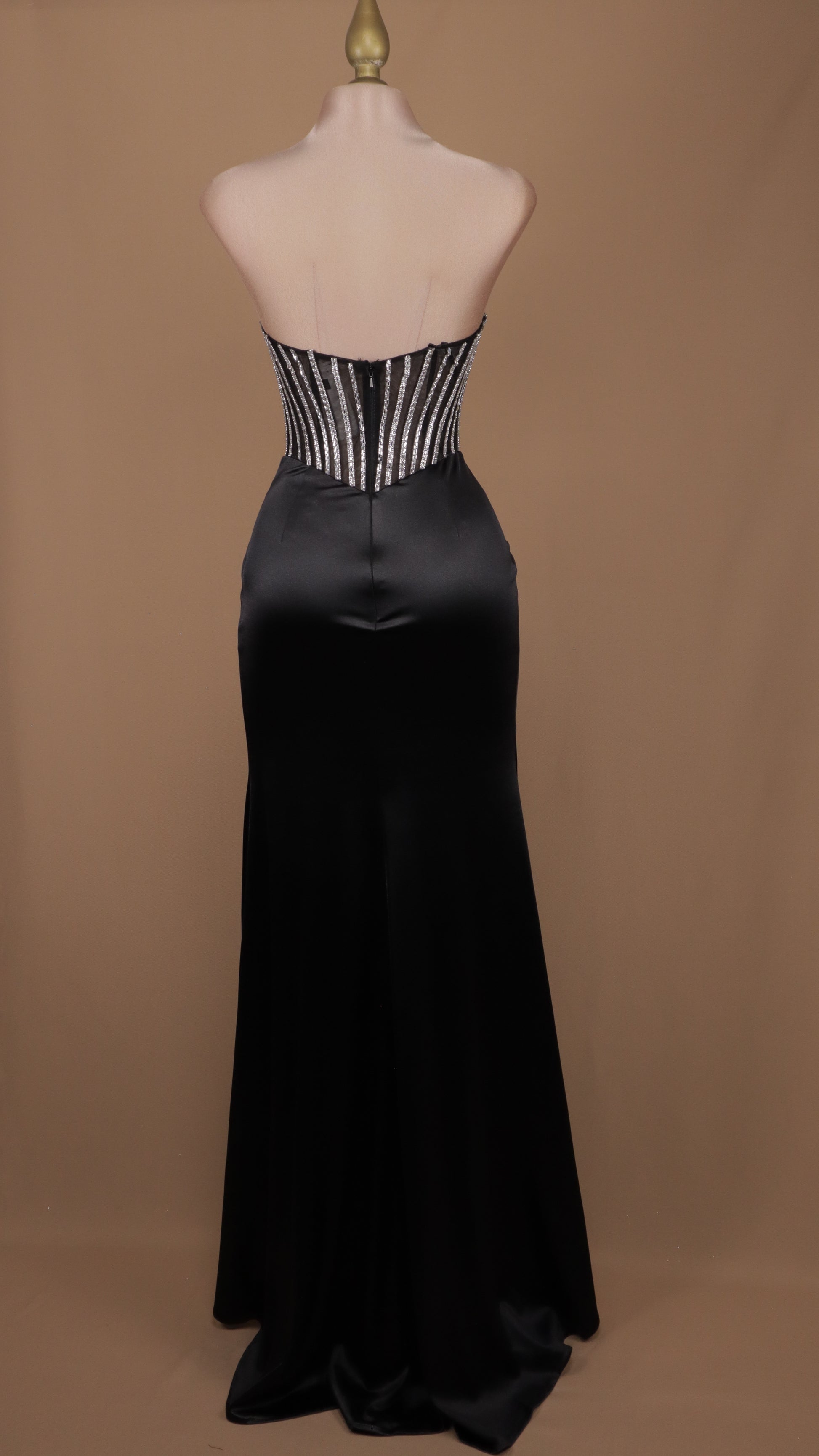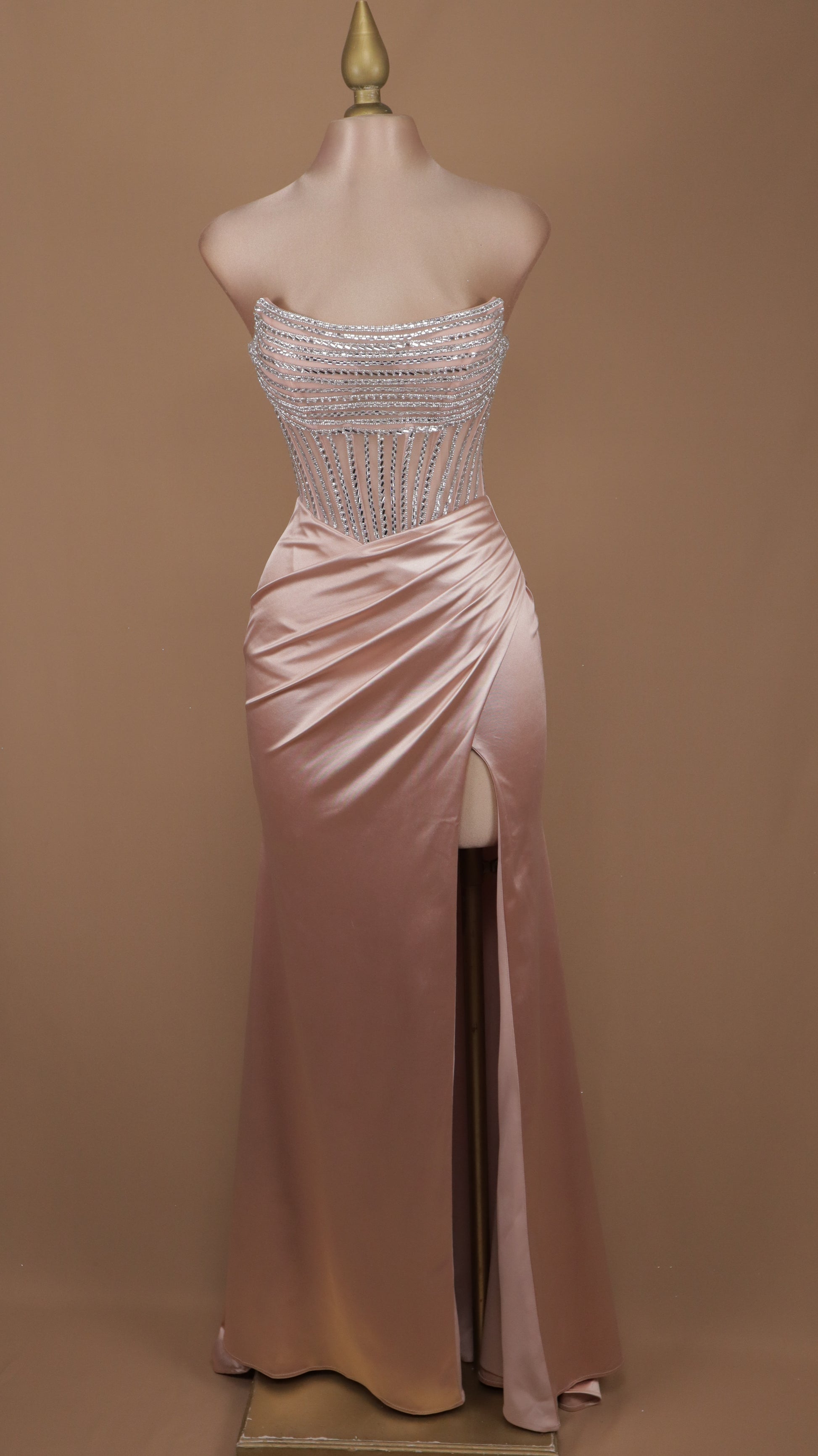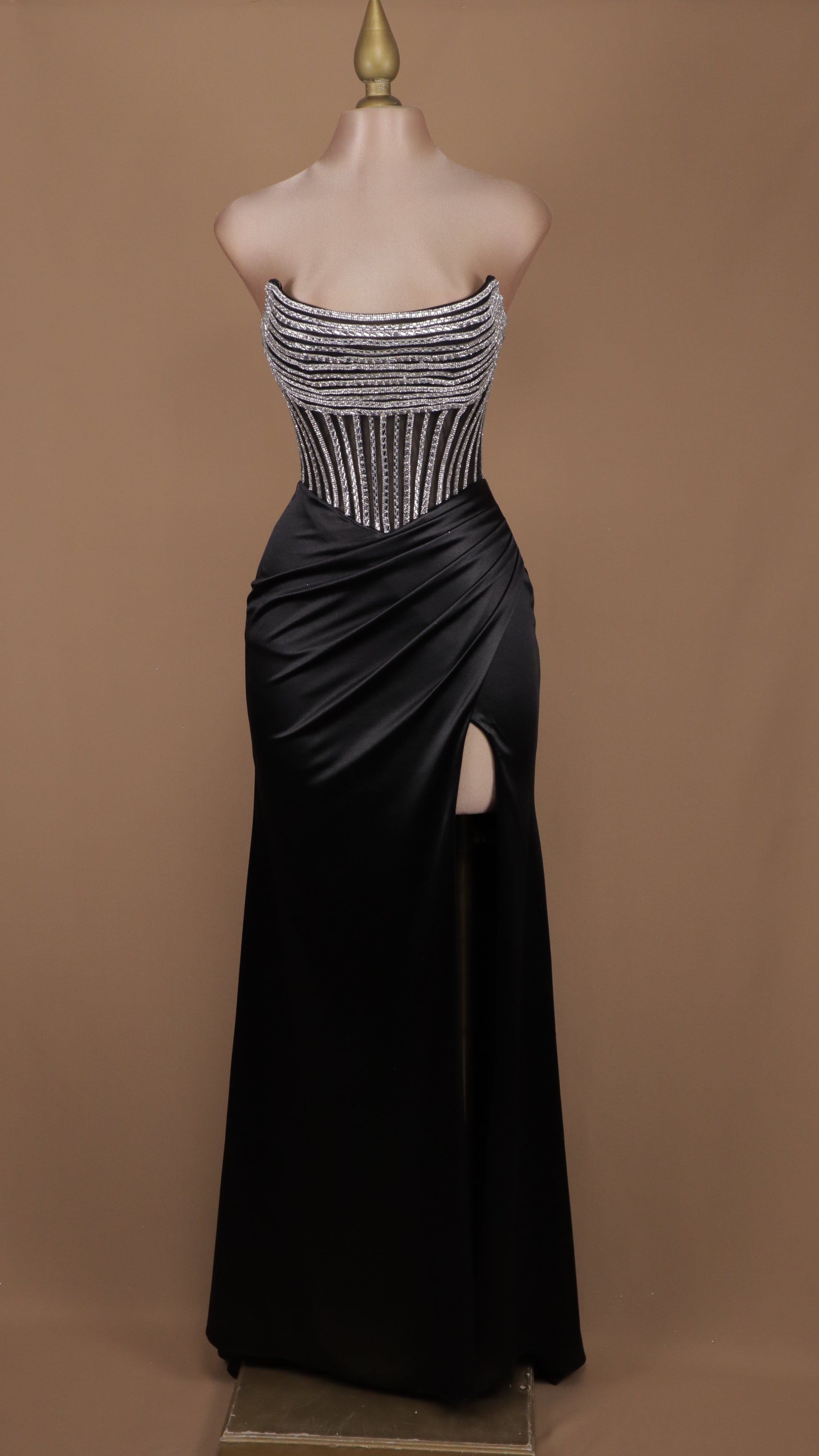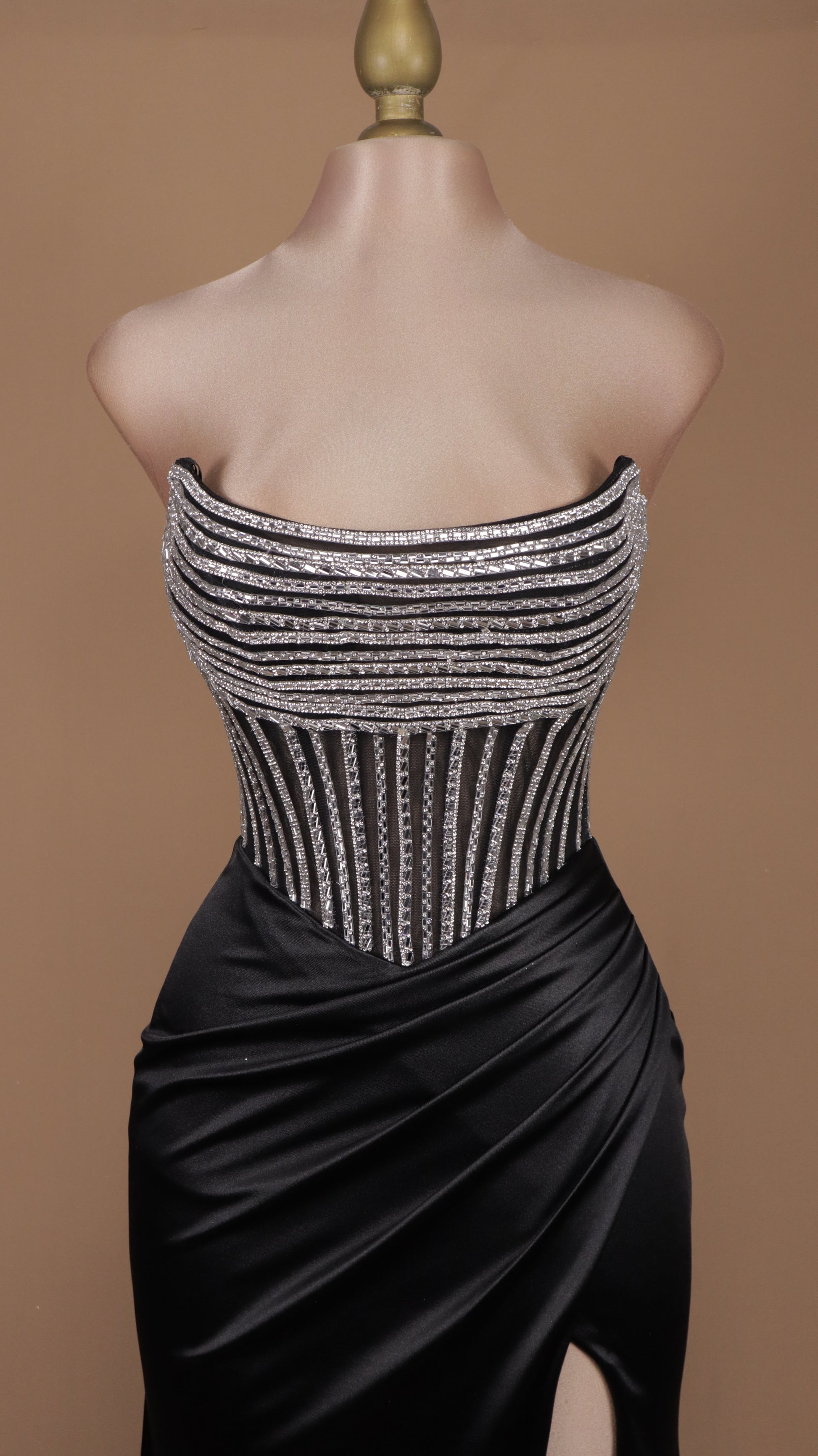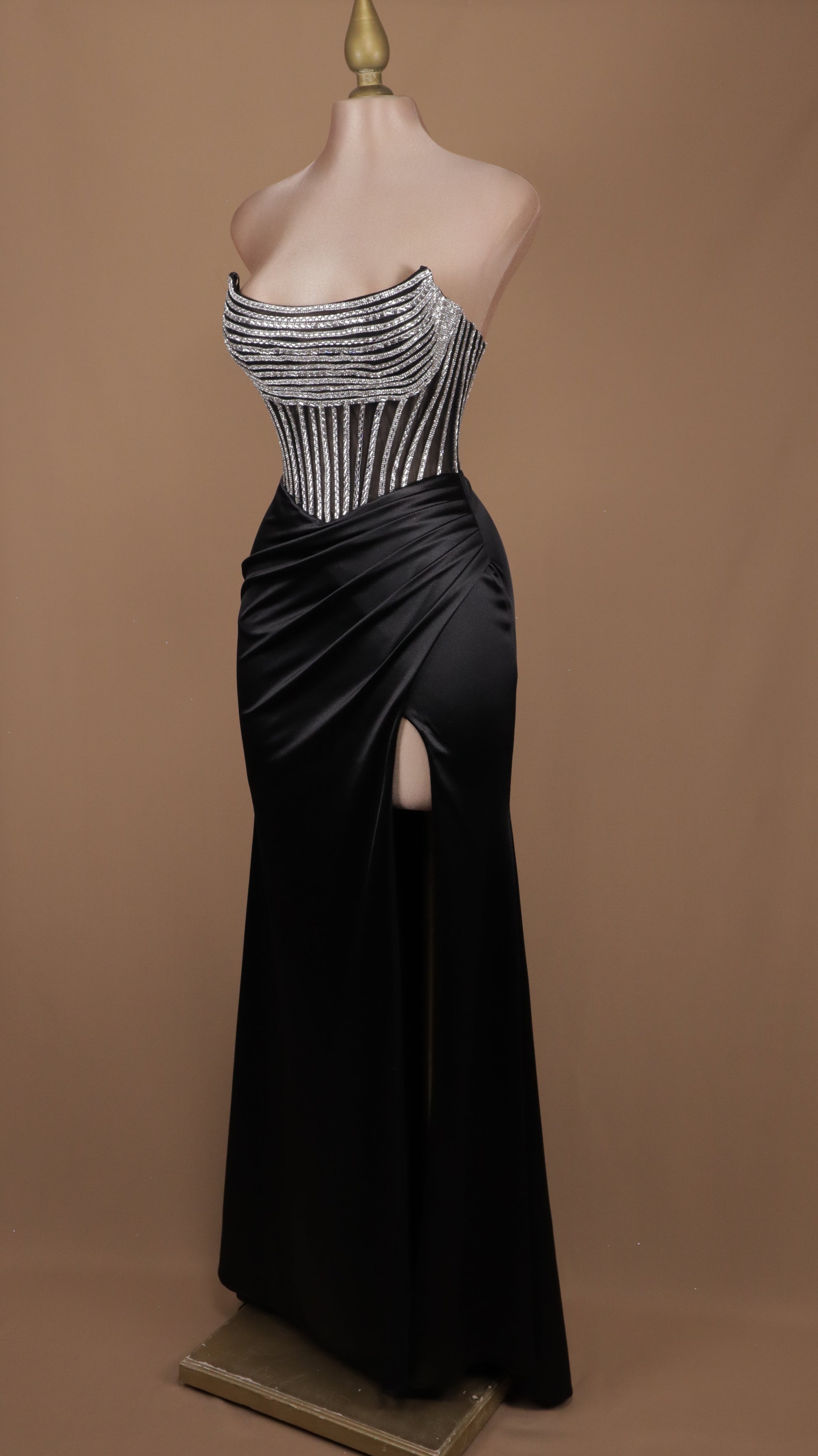 ¡Conviértete en la reina de la graduación con nuestro vestido largo, con aplicaciones en tiras que le darán un toque único y elegante a tu look! Este vestido te hará sentir segura y hermosa en tu gran noche. ¡Destaca entre la multitud y crea recuerdos inolvidables con nuestro vestido!