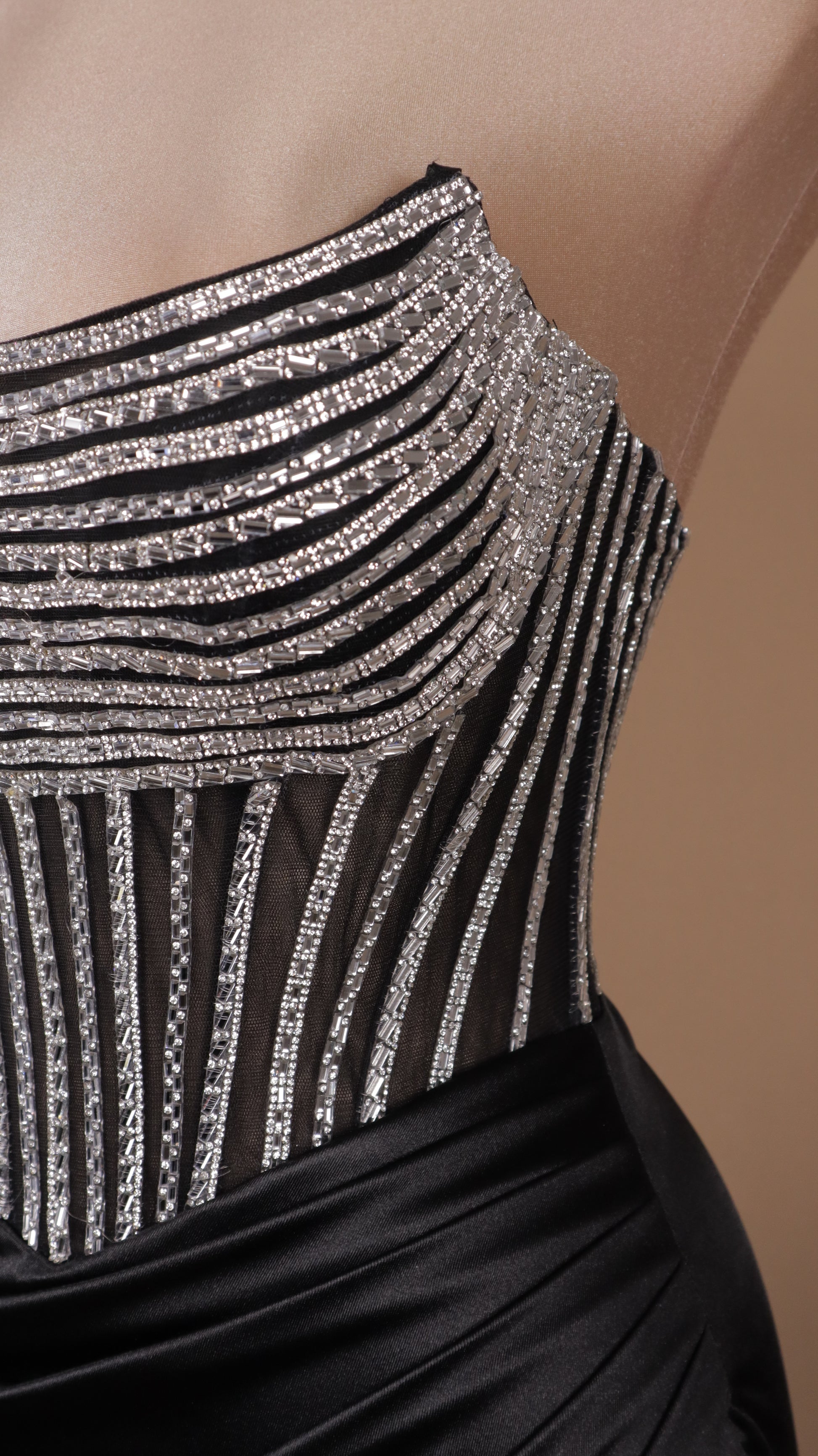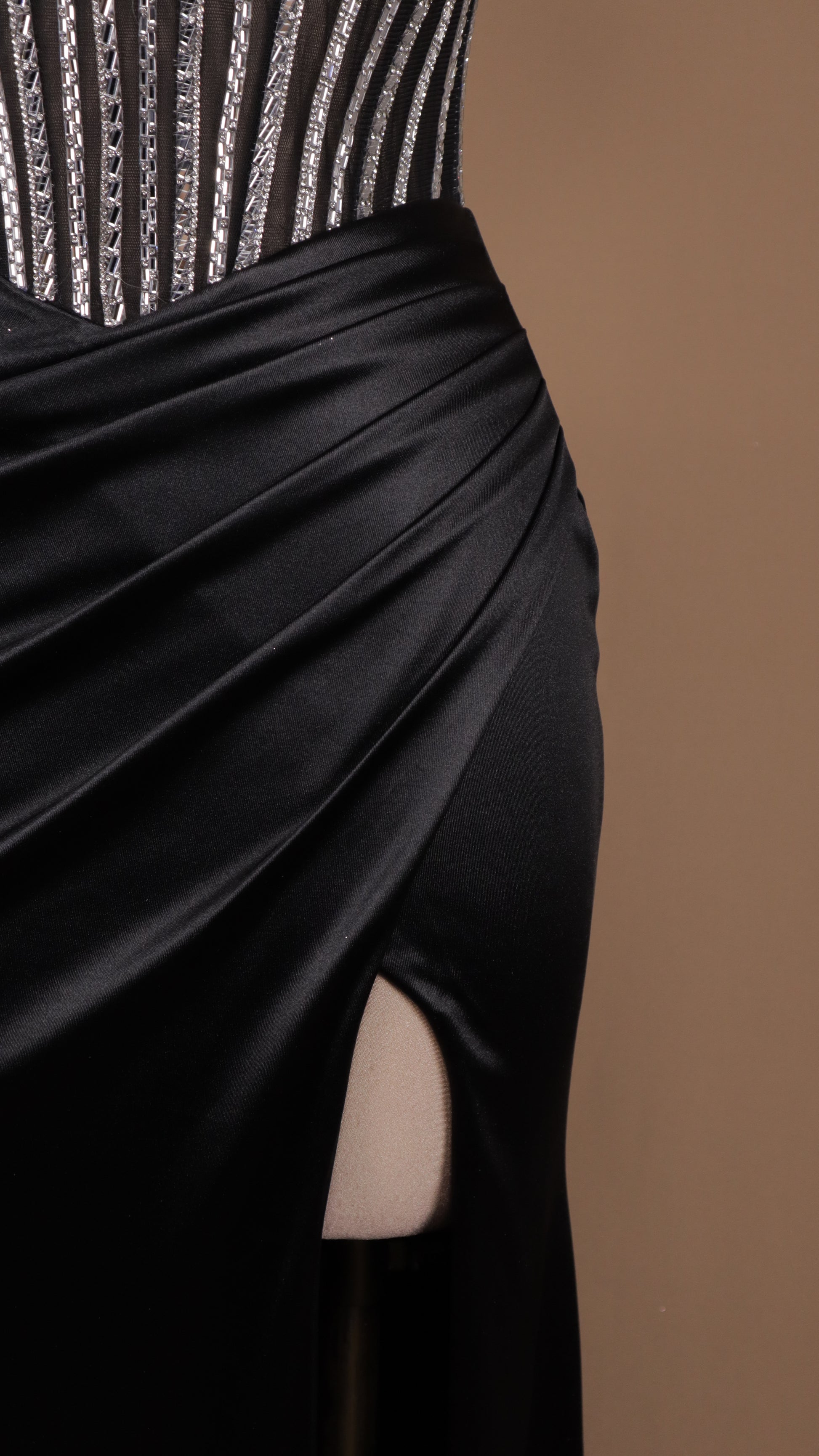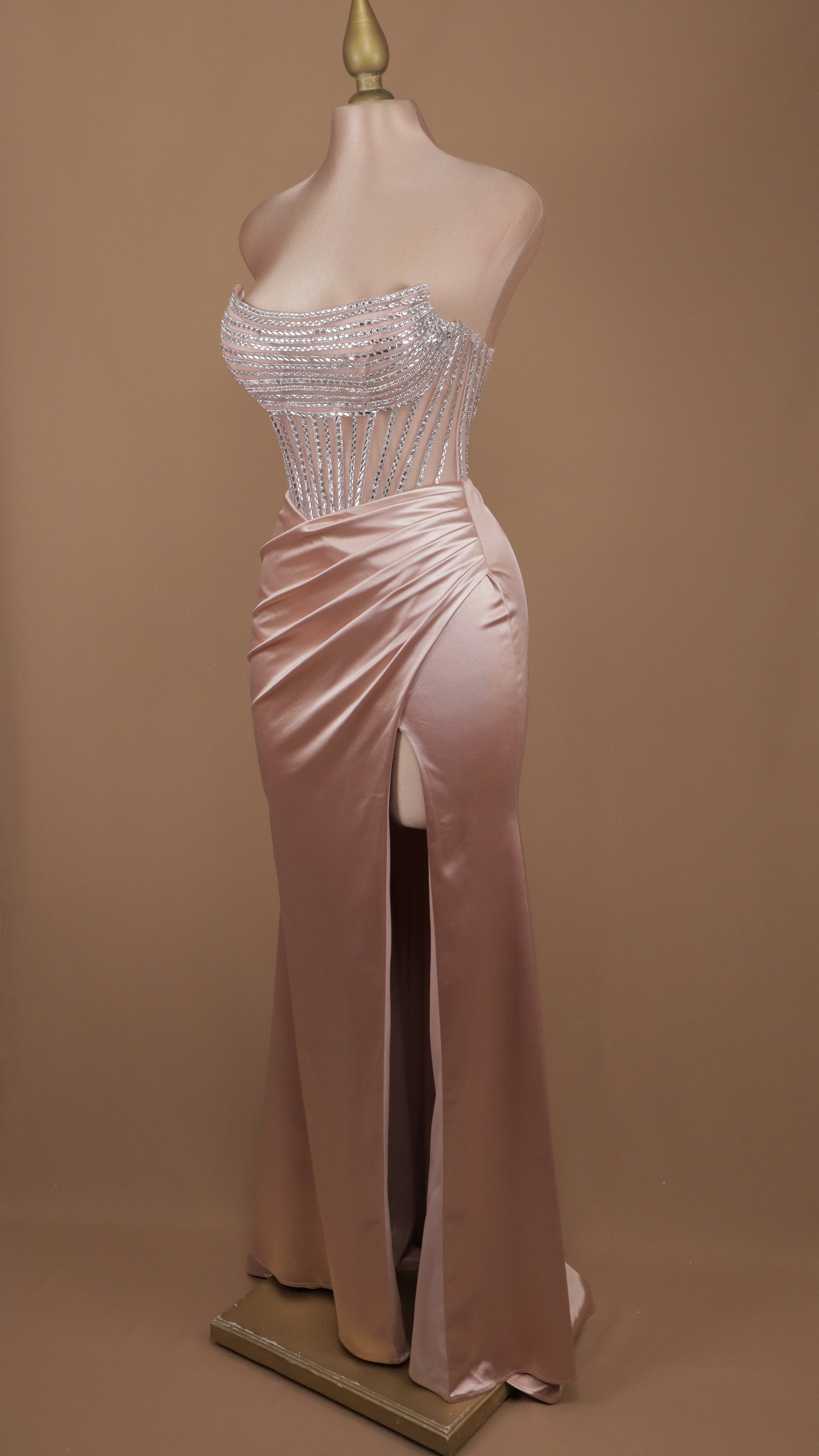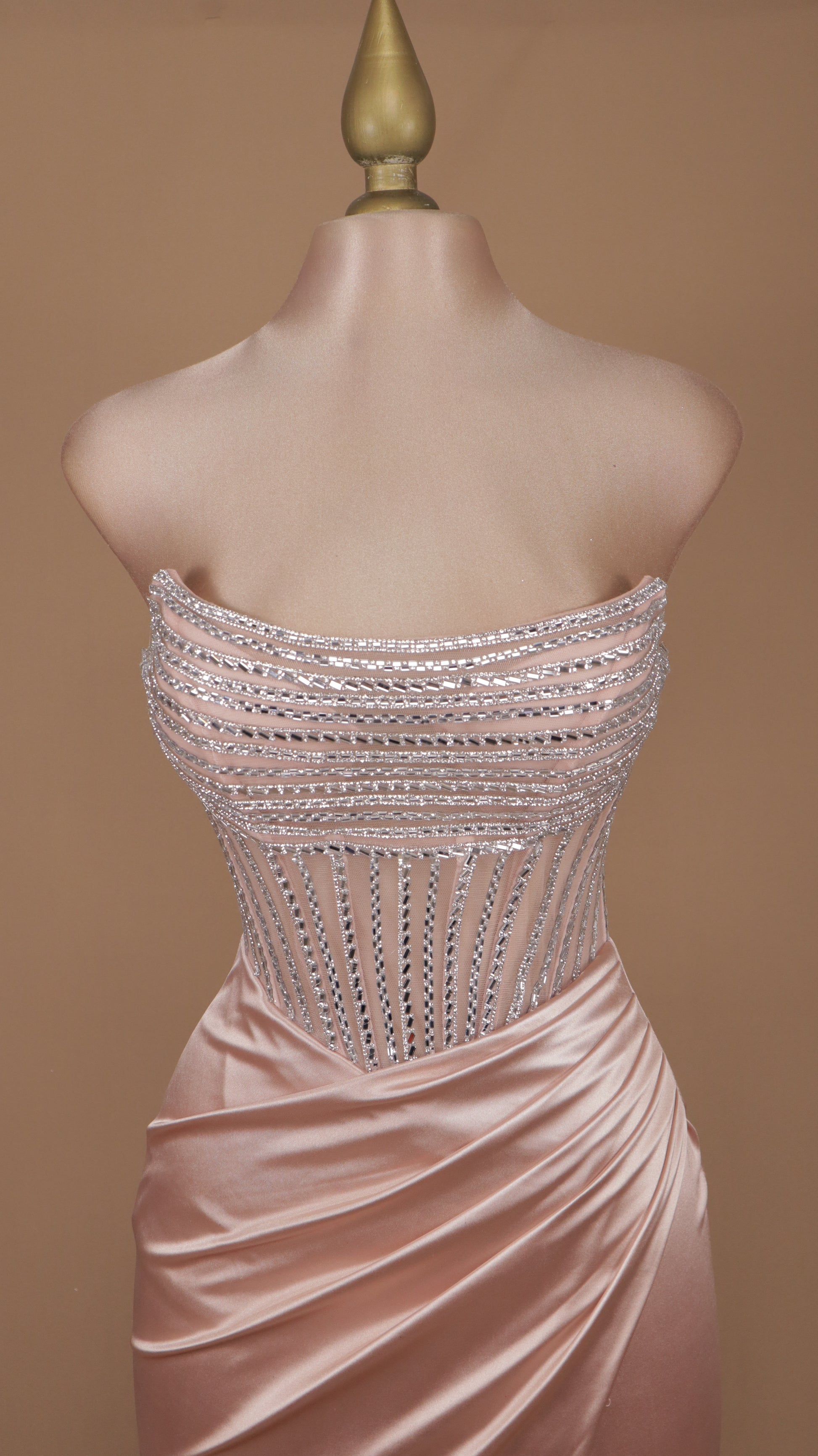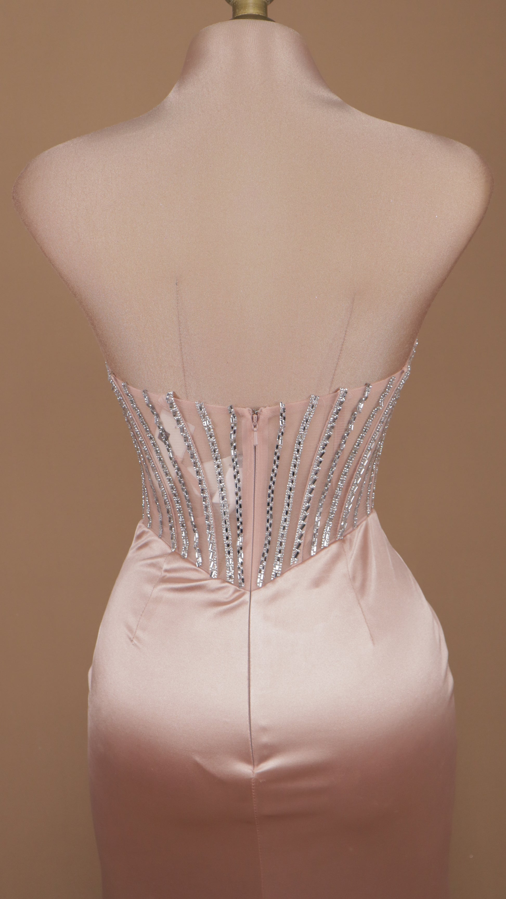 ¡Conviértete en la reina de la graduación con nuestro vestido largo, con aplicaciones en tiras que le darán un toque único y elegante a tu look! Este vestido te hará sentir segura y hermosa en tu gran noche. ¡Destaca entre la multitud y crea recuerdos inolvidables con nuestro vestido!